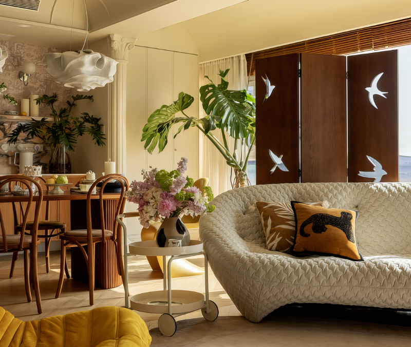 “喜欢法式、浅色,爸爸要一个独立书房,要很好的亲子互动氛围、很多阅读场景。”没有列清单、没有反复强调,她说:“具体的样子我没概念,反正我相信宋总(设计师宋夏)审美。”对设计师来说,这种完全信任固然是福气,但也意味着更高的创作自觉。所以设计师宋夏在与庞庞一起构建这个家的时候,关注的也不是某一种审美风格,而是这一家人之间的“生活力”——他们如何穿行、互动、独处、热闹,他们的爱在什么细节里流动。它需要有沉静的角落,也需要可以“打闹”的回旋余地;要有美的节制,也要有松弛的弹性;既能独处得好,也能团聚得自在。